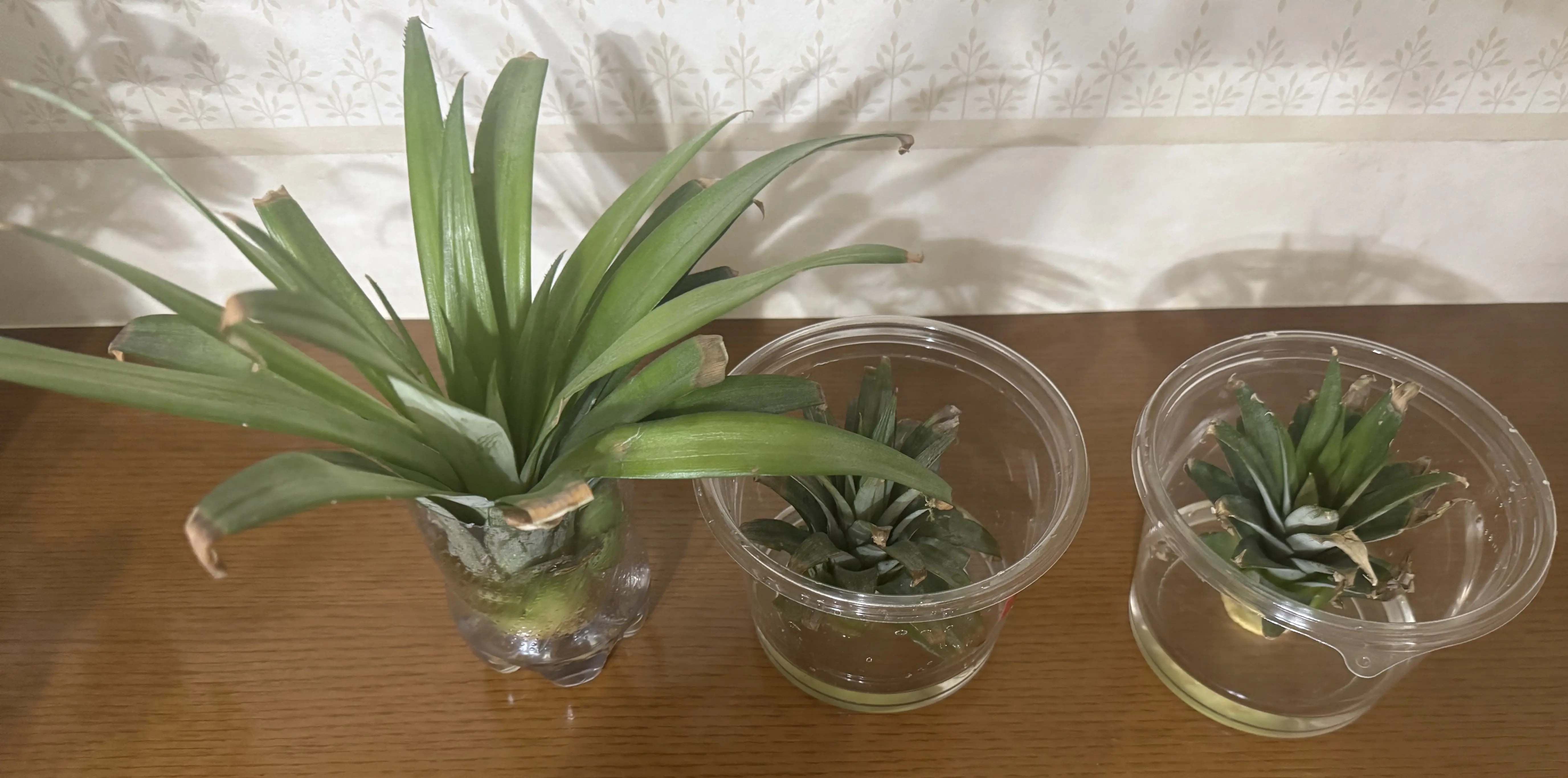 台湾パイナップルと普通のパイナップルの挿し木を挑戦してみます。