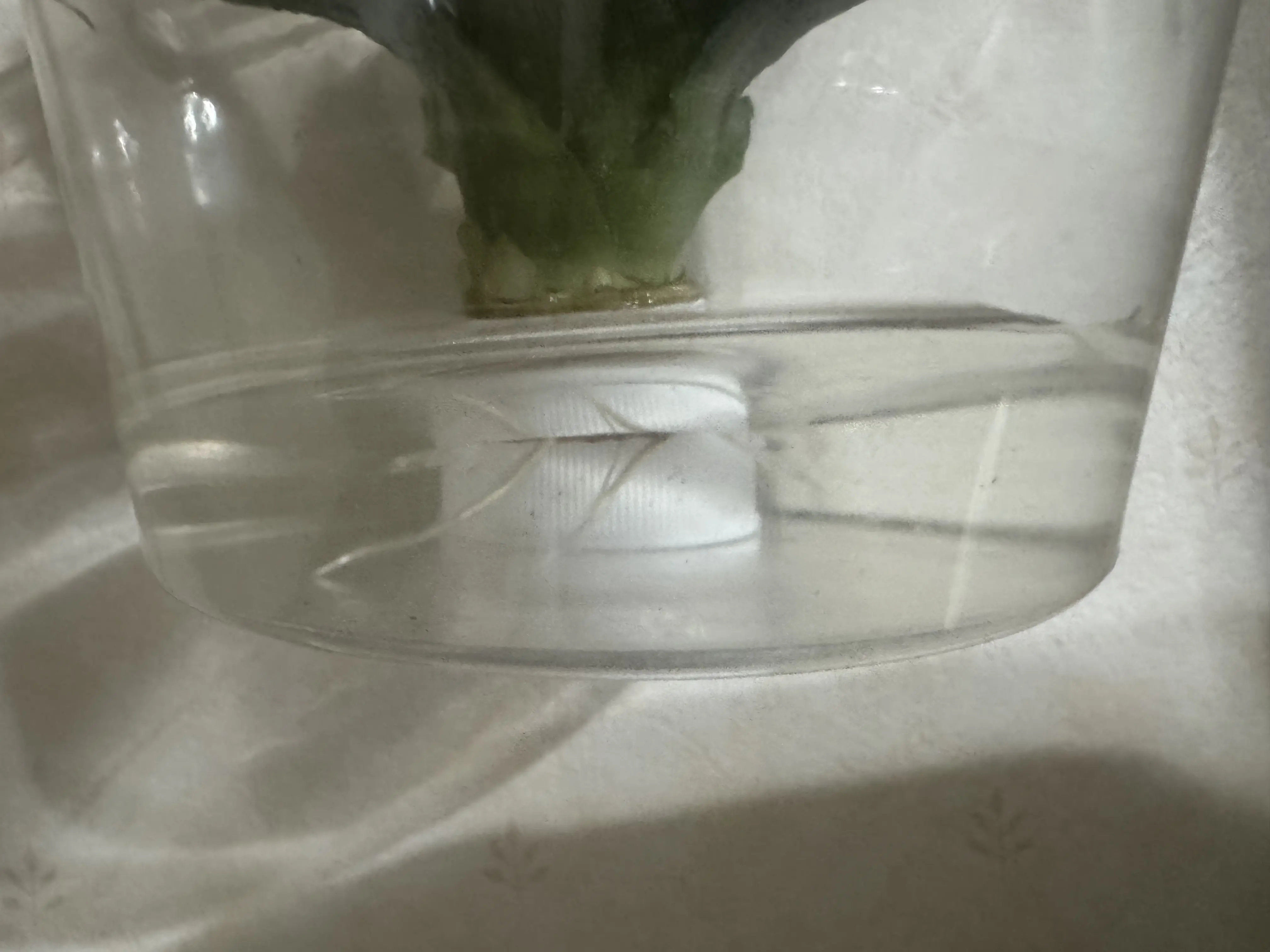 ペットボトルの蓋を土台にして、根っこがつぶれないように工夫しました。
