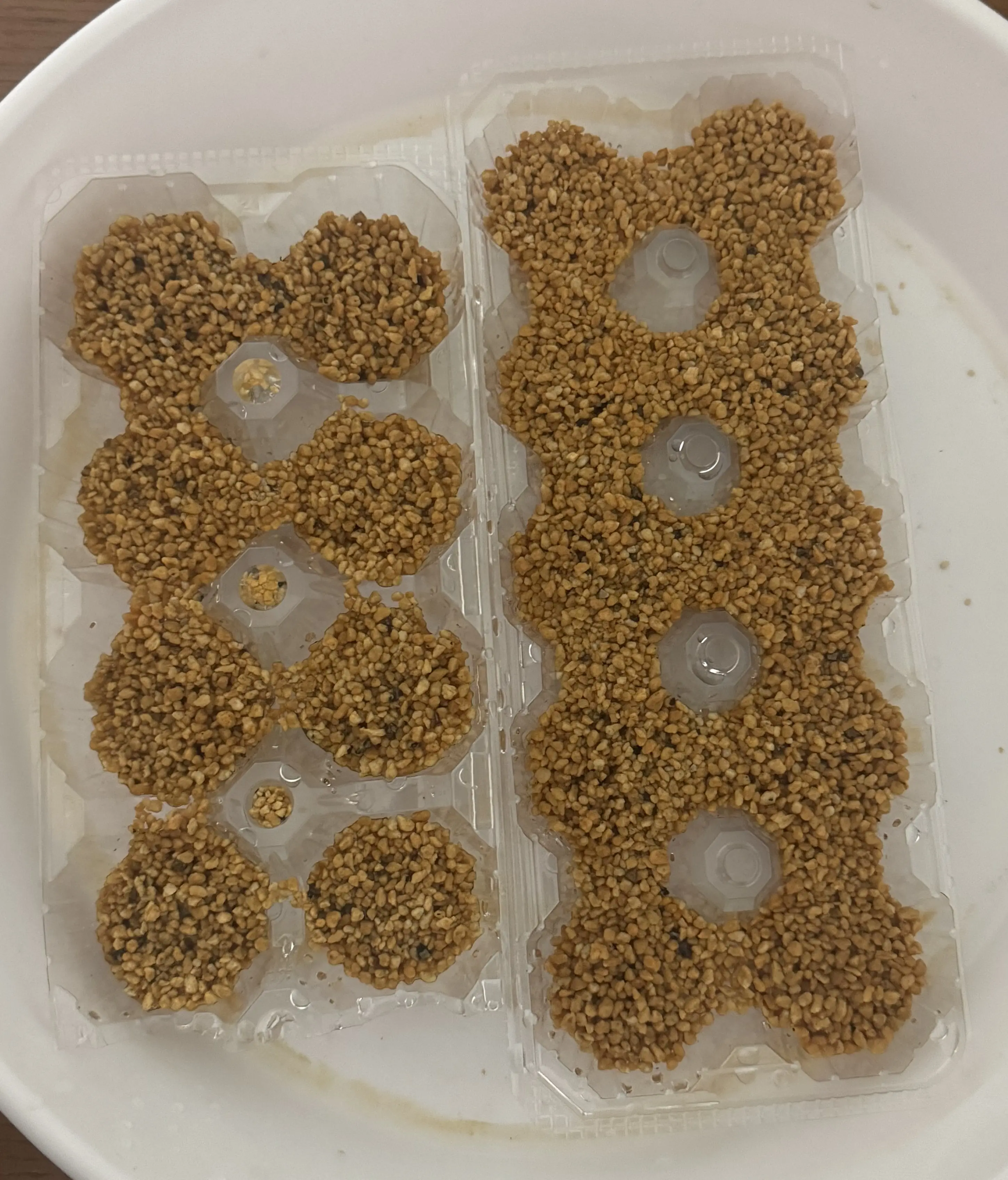 鹿沼土を卵パックに敷き詰めてパイナップルの種を蒔いてみました。