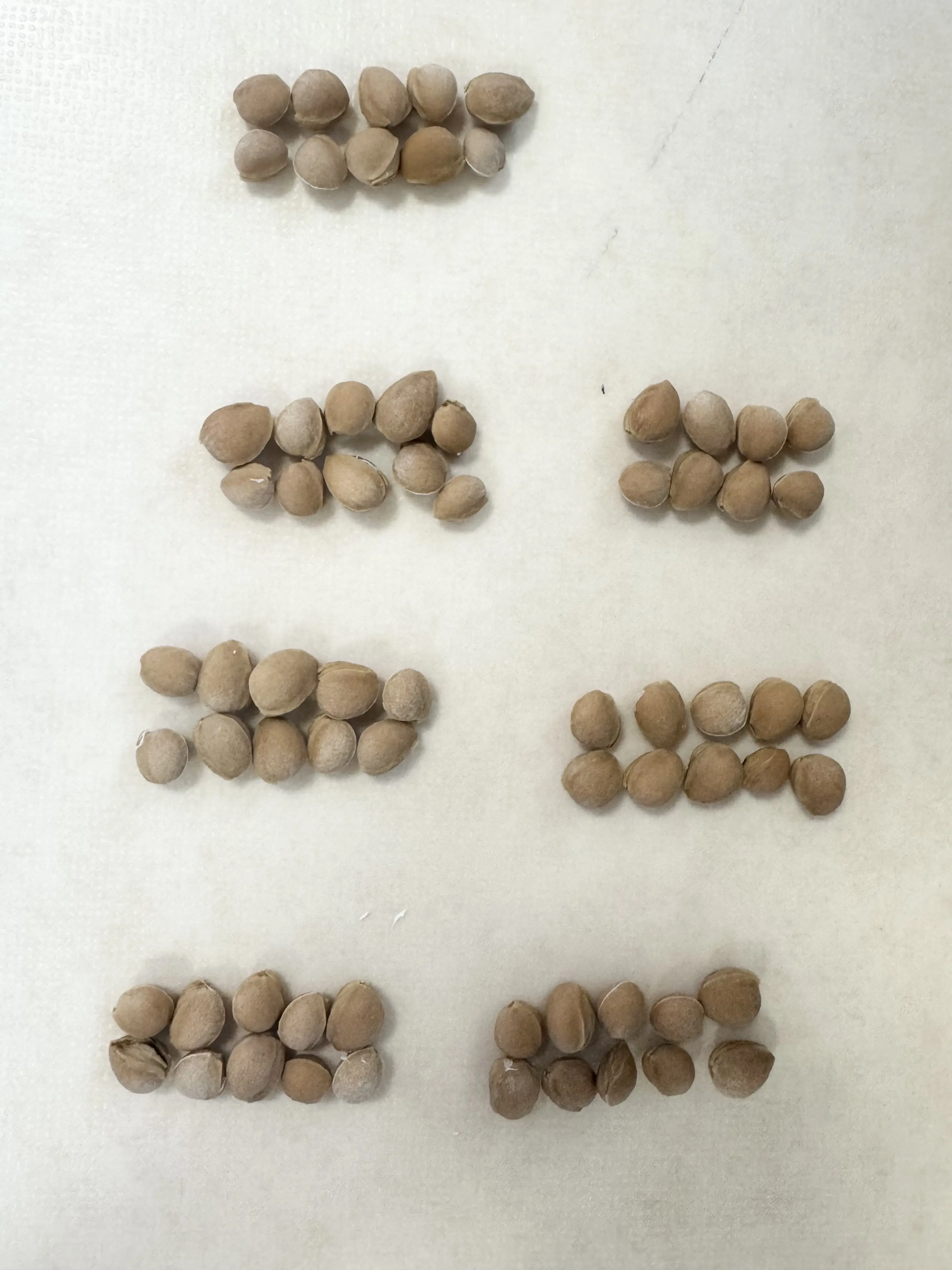 ただ、殻を割ってみたところ、中が空っぽだったり、すでに腐っていた種が7粒ほどあったので、それらは除外しました。