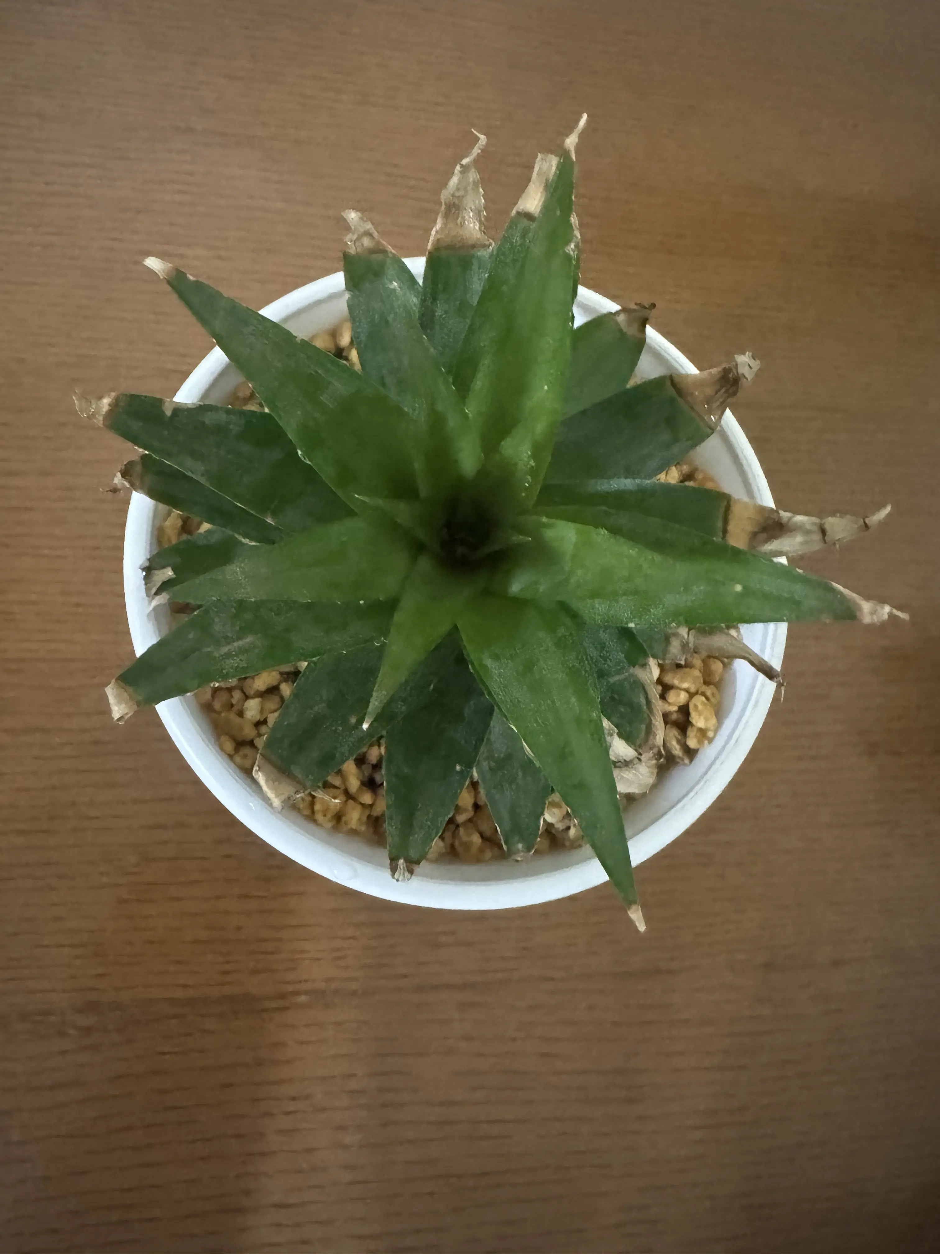 その後、再度購入したパイナップル2株をメネデールを使っているところです。