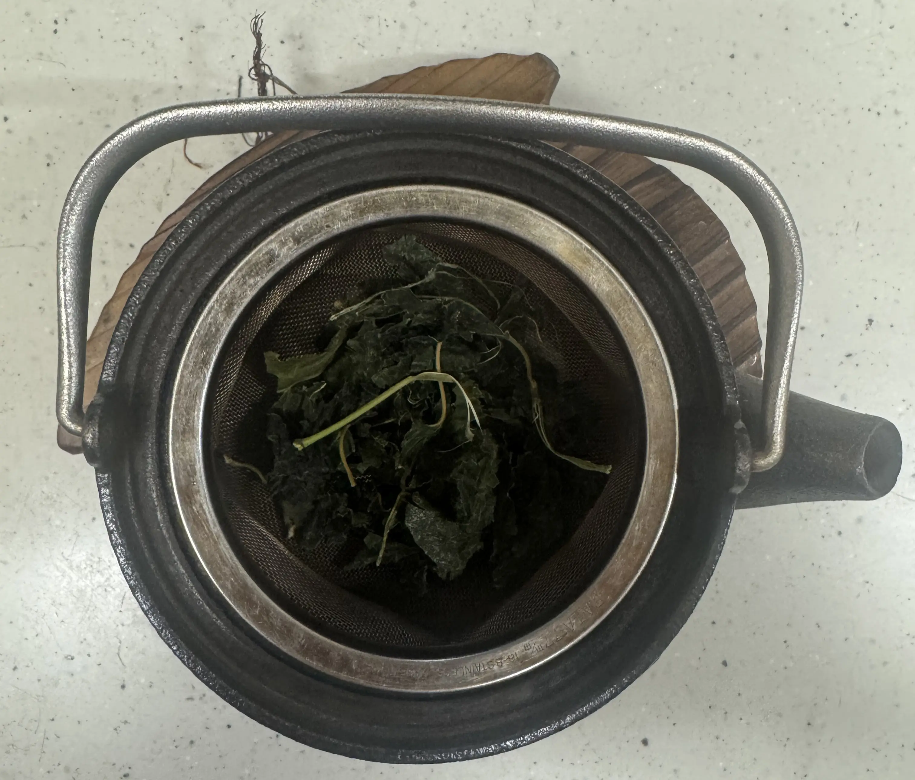 乾いた葉を適当な大きさにちぎり、熱湯を注いでみます。