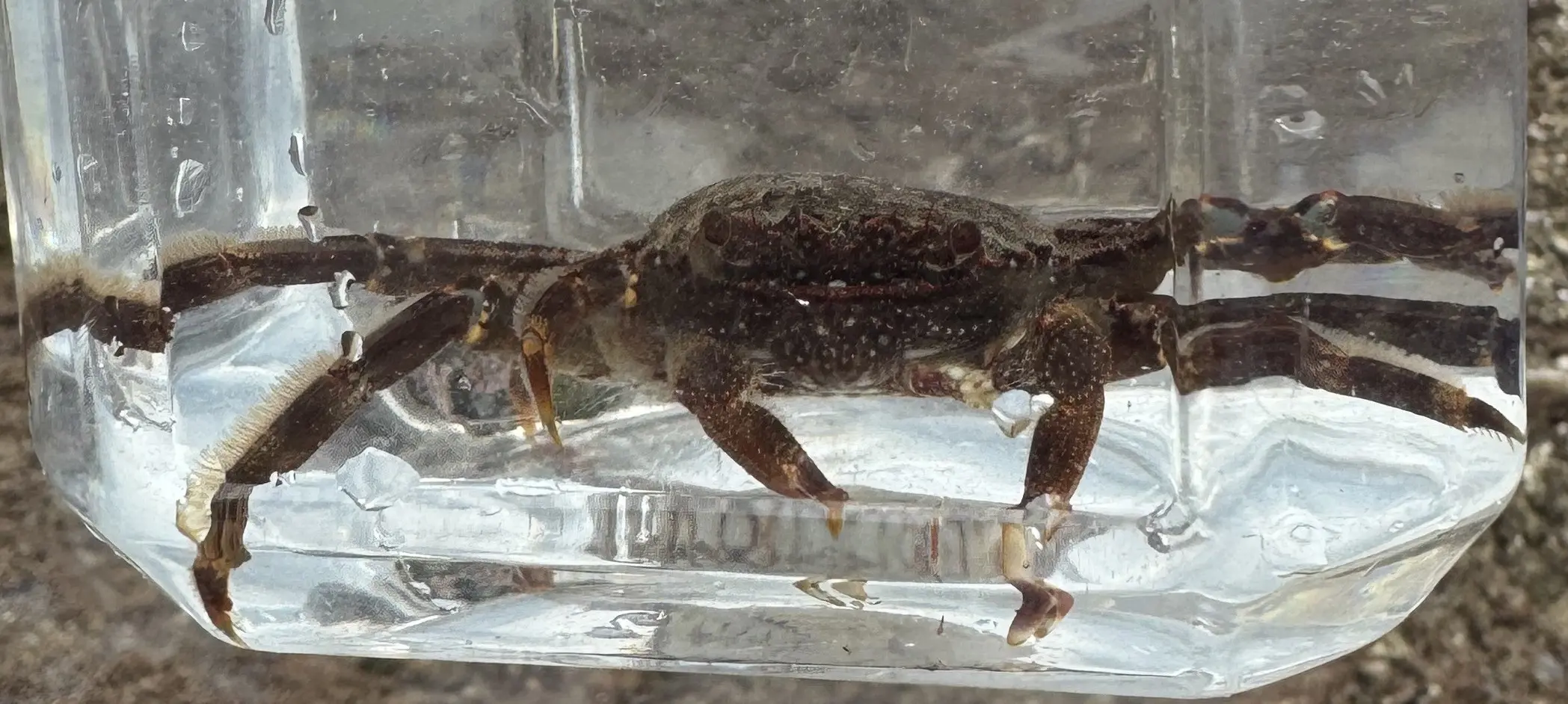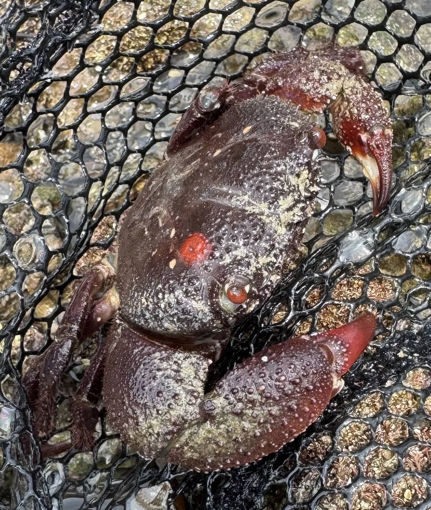 逃げ足が速いので、いつも捕獲できないカニですが、なぜか今回網に入りました。